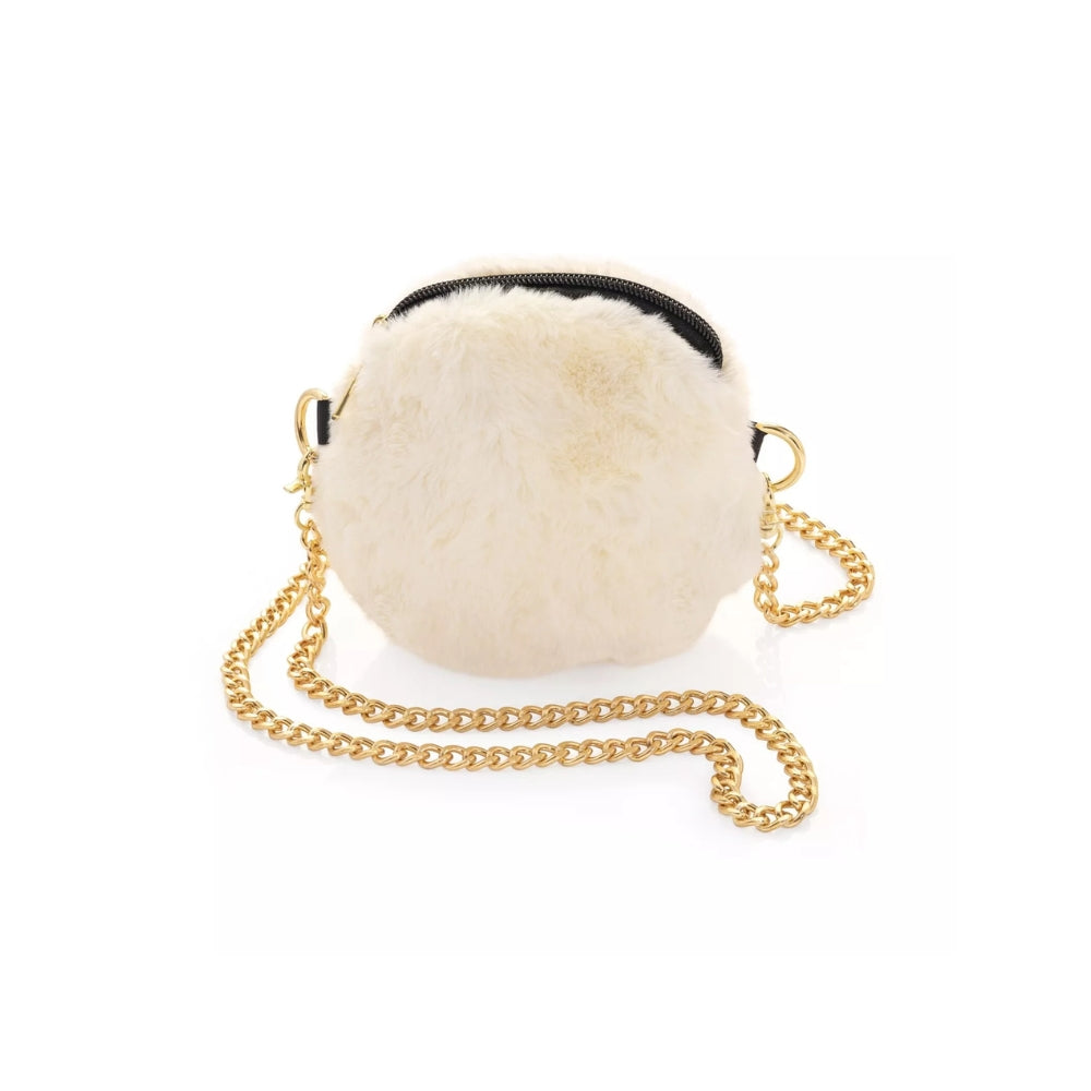 Faux Ivory Soft Fur Handbag with Gold Chain Chic & Elegant Crossbody Bag