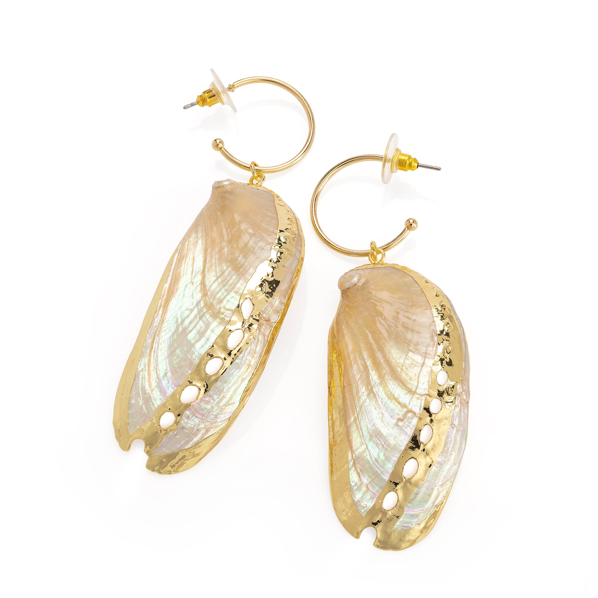 Add these exquisite shell hoop earrings to your jewelry collection today. Order now and enjoy fast shipping. Elevate your style with a touch of oceanic elegance!