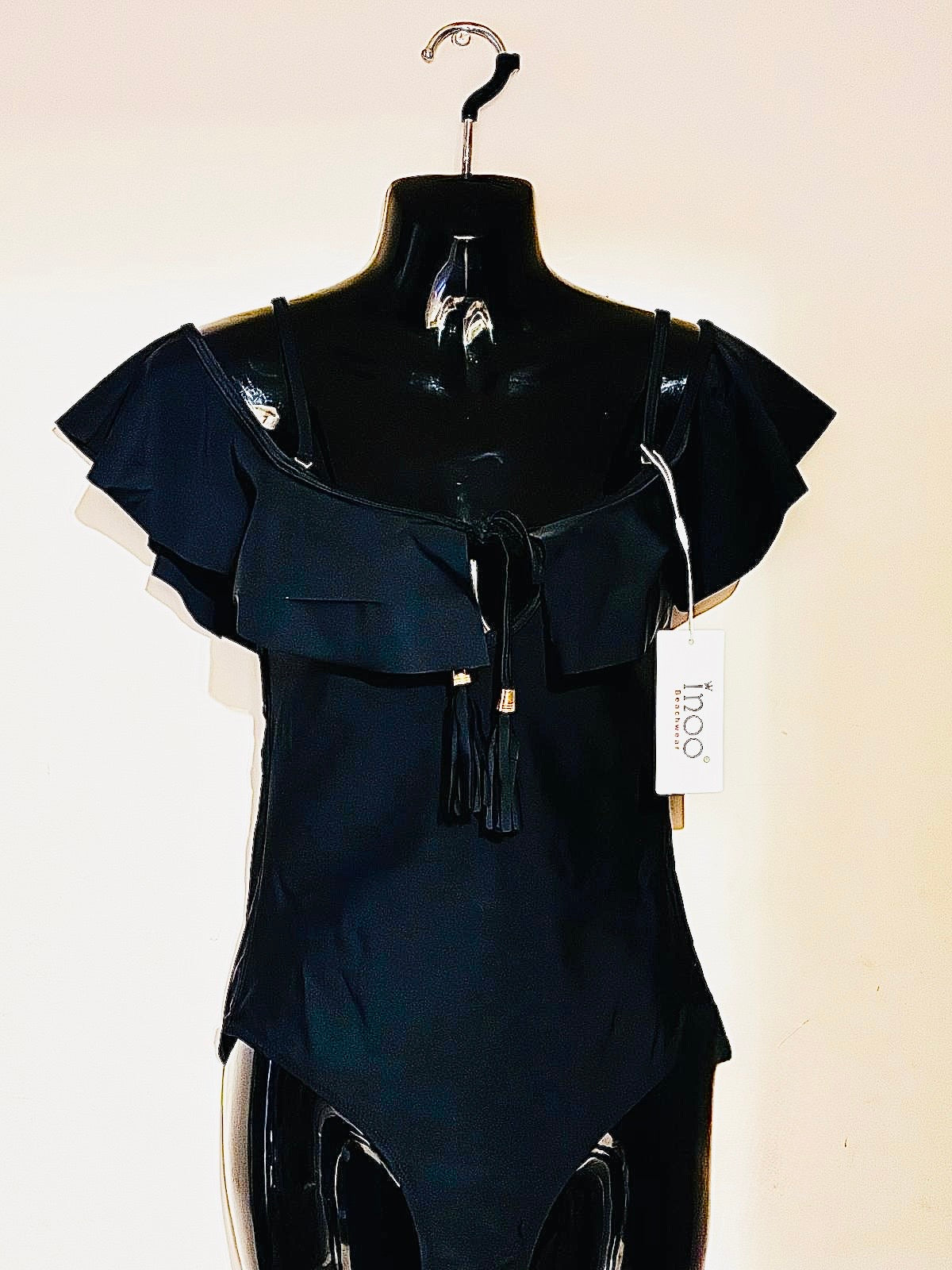 Swim Suit Black with Frill & Gold detailed Tassel