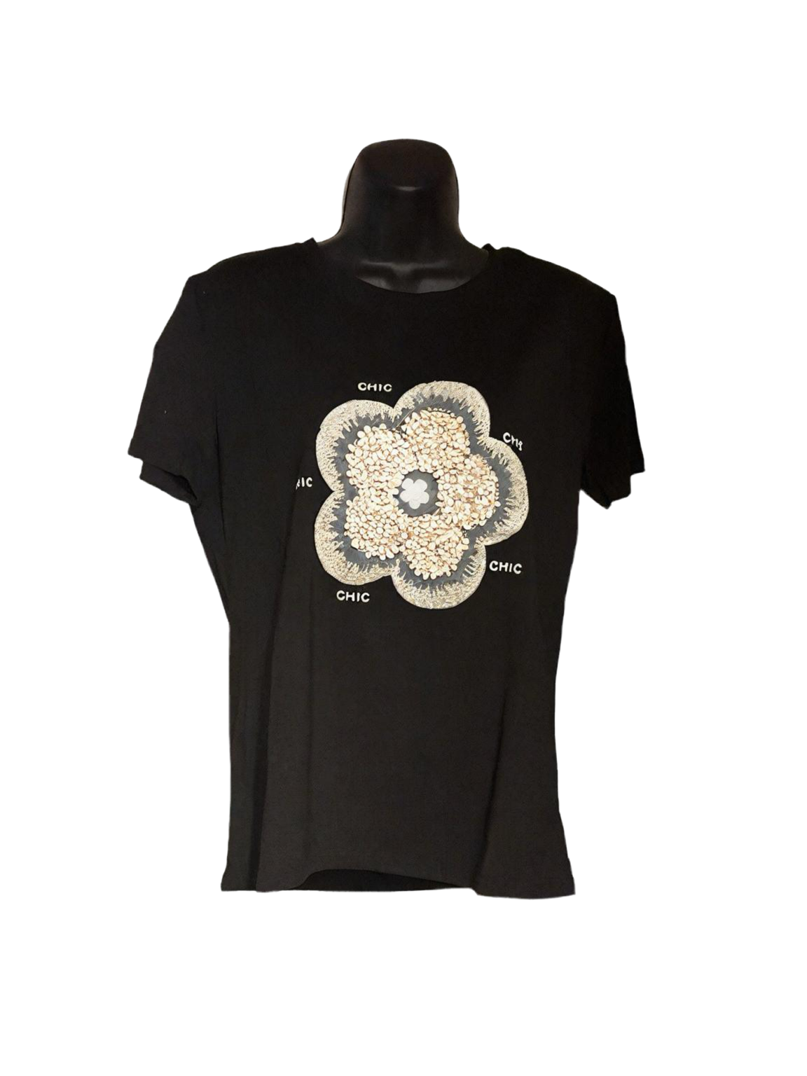 T-Shirt Nude & Black - Chic Flower Embellishment