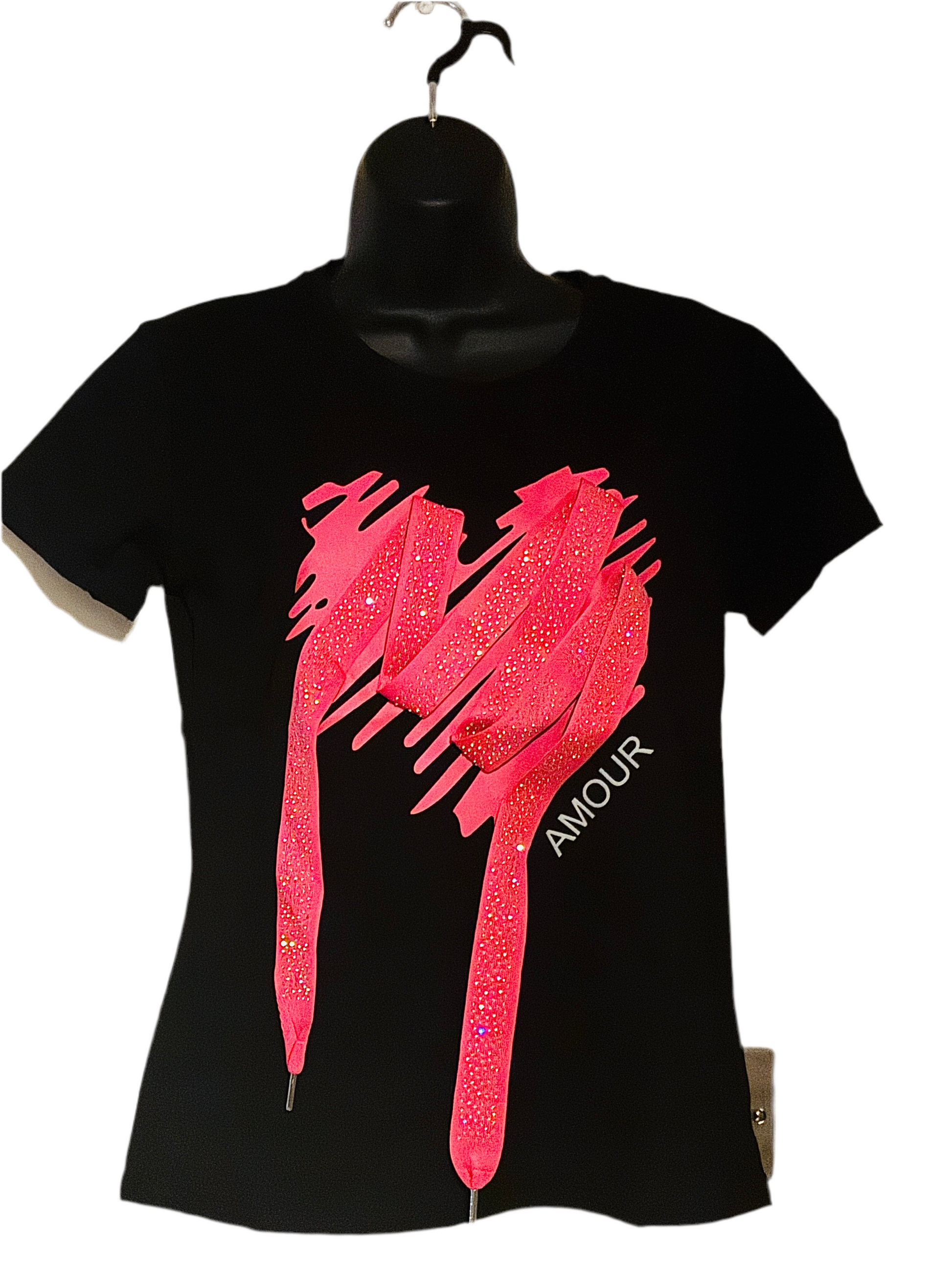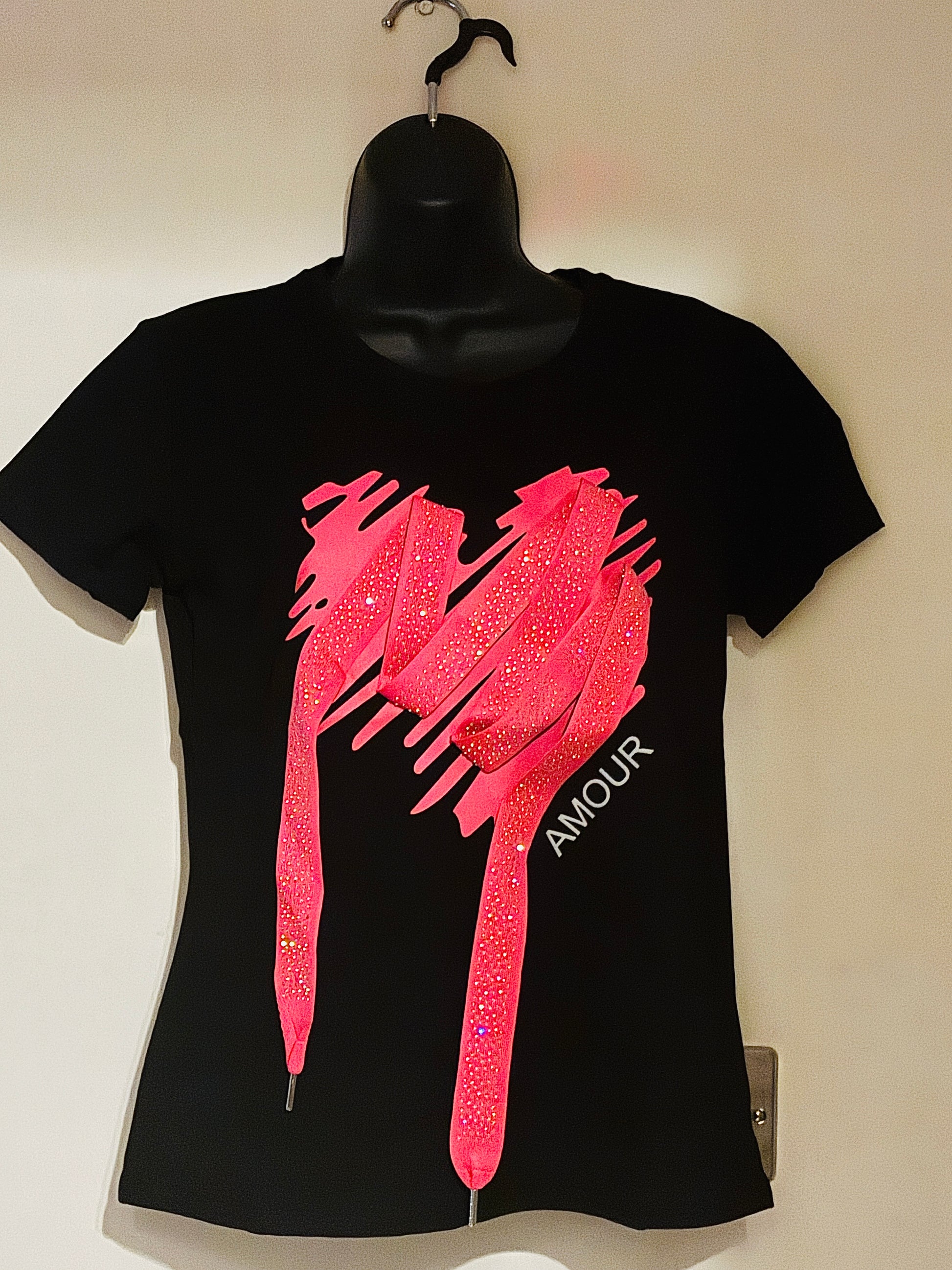 T-Shirt Short Sleeve Pink Shoe Lace Diamanté Amour